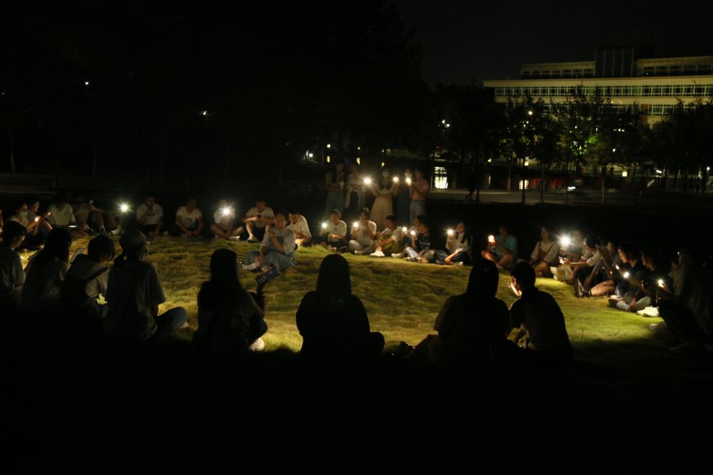活动伊始,同学们被分成三组,每组成员在两名志愿者带领下进行“大树松鼠”、“一块五毛”、“趣味报数”、“水果蹲”等素拓项目。薄暮时分,太阳收敛起刺眼的光芒,同学们却热情不减,积极投入到游戏互动中,认真思考、奋力拼搏,或考验默契度,或增进彼此友谊,一棵树广场上回荡着青春的欢声笑语。最后,同学们围坐一起闲叙心事、展望未来。在轻快的合唱声中,本次活动圆满结束。
